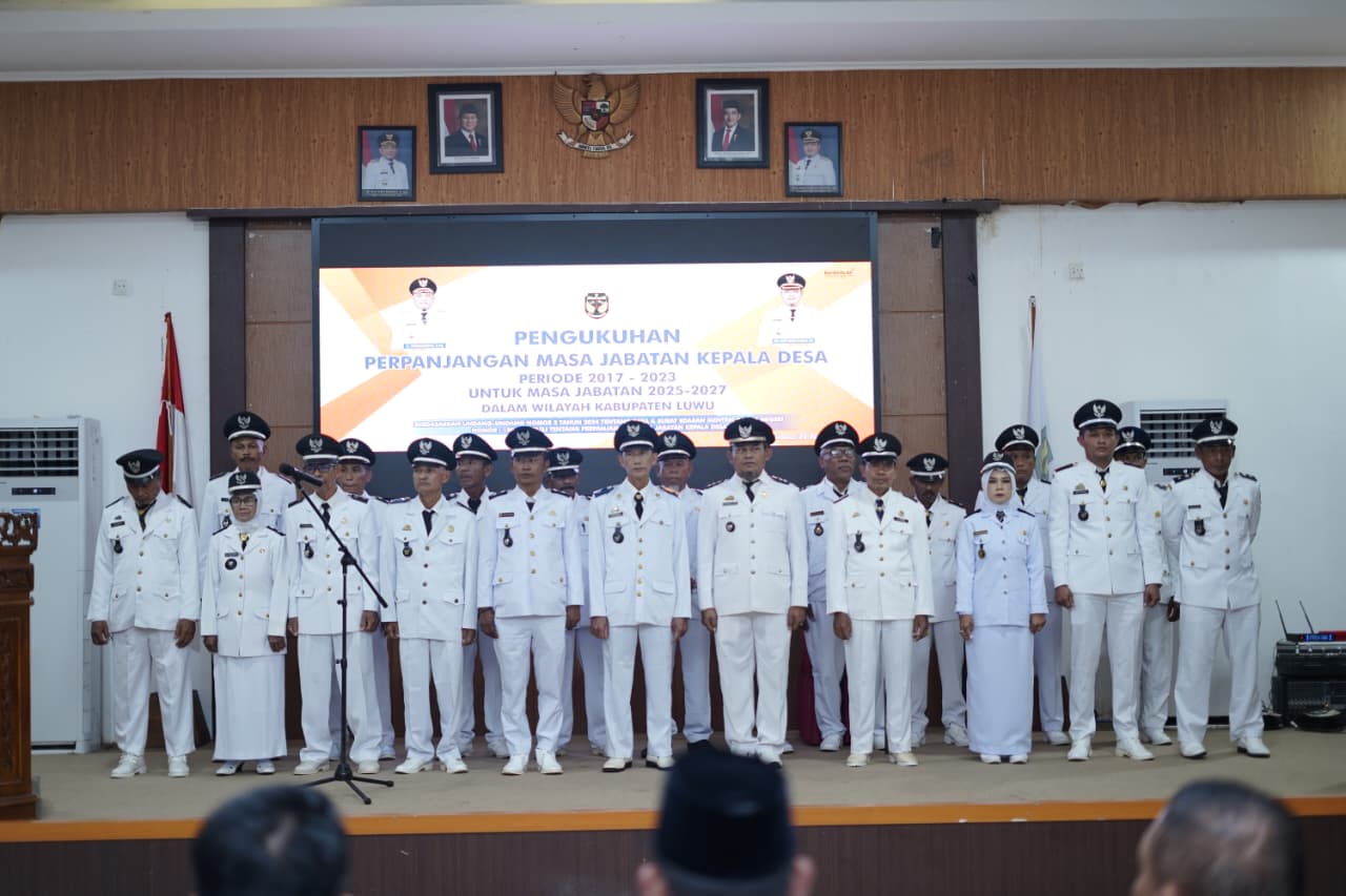 LUWU – Sebanyak 22 Kepala Desa di Kabupaten Luwu yang masa jabatannya berakhir pada 2024 kembali diperpanjang dua tahun setelah dilantik di Aula Rujab Bupati,Luwu Belopa, Rabu, 20 Agustus 2025.