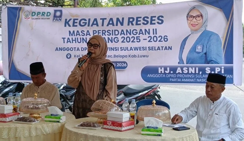 LUWU – Anggota DPRD Provinsi Sulawesi Selatan, Hj Asni S.Pi, melaksanakan kegiatan reses masa persidangan II Tahun Sidang 2025–2026 yang dirangkaikan dengan buka puasa bersama masyarakat di Kabupaten Luwu.