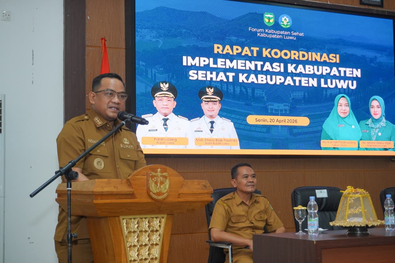 Penegasan tersebut disampaikan saat membuka Rapat Koordinasi Penguatan Forum dan Implementasi Kabupaten Sehat Luwu yang berlangsung di Aula Rumah Jabatan Bupati Luwu, Senin (20/4/2025).